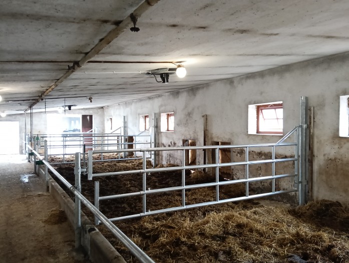Głównym punktem naszych prac była wymiana wygrodzeń oraz dostosowanie ich do indywidualnych potrzeb klienta. Zamontowane wygrodzenia to grube i masywne elementy, które służyć będą wiele lat. Składają się na nie bramki oddzielające poszczególne kojce, bramka w drzwiach końcowych oraz rura karkowa z dwoma bramkami przy stole paszowym.