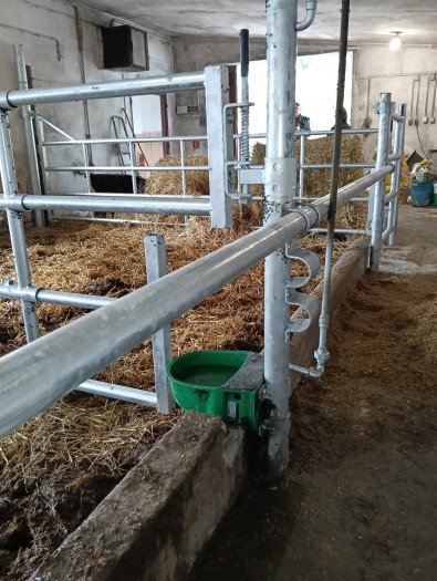 Dodatkowo zamontowaliśmy też 5 podgrzewanych poideł z bardzo wytrzymałego plastiku o pływakowej kontroli poziomu wody w poidle. Dzięki temu wszystkie krowy i jałówki będą miały stały dostęp do płynnej wody bez konieczności naciskania na język.