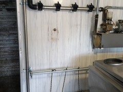 Pomieszczenie zlewni mleka także było wyzwaniem pod względem planowania – musieliśmy zmieścić się w dość niskim oraz stosunkowo krótkim pomieszczeniu, jednak udało nam się zachować wszelkie standardy a dojarka przewodowa działa bez zakłóceń.