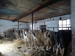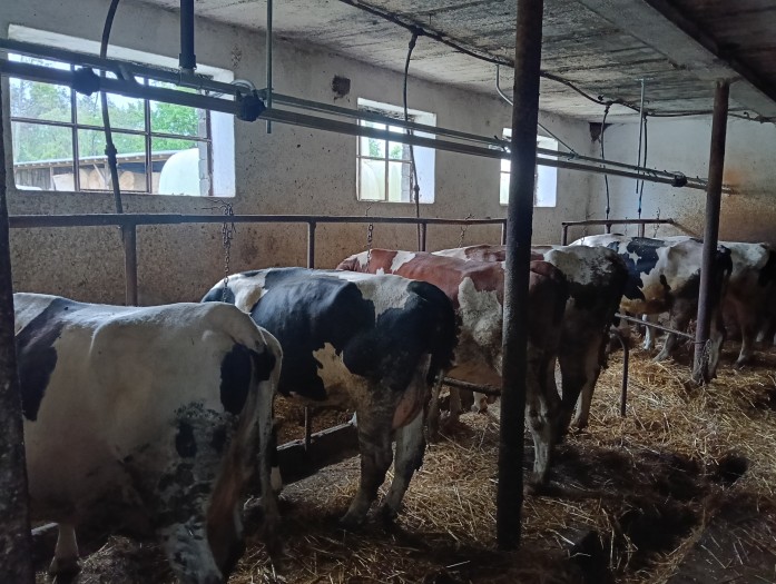 Dojarka przewodowa zamontowana przez nas przebiega przez 6 pomieszczeń ułożonych w kształcie litery L. W każdym z tych pomieszczeń znajduje się inna ilość zwierząt w różnym układzie – w jednym są to tylko dwie krowy w jednym rzędzie, w innym dwanaście w dwóch rzędach podzielonych przejściem technicznym.