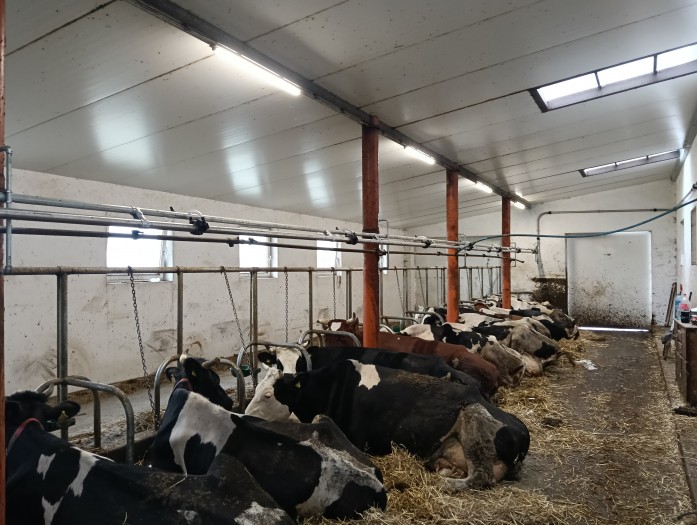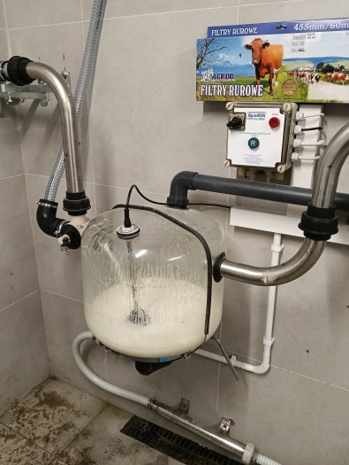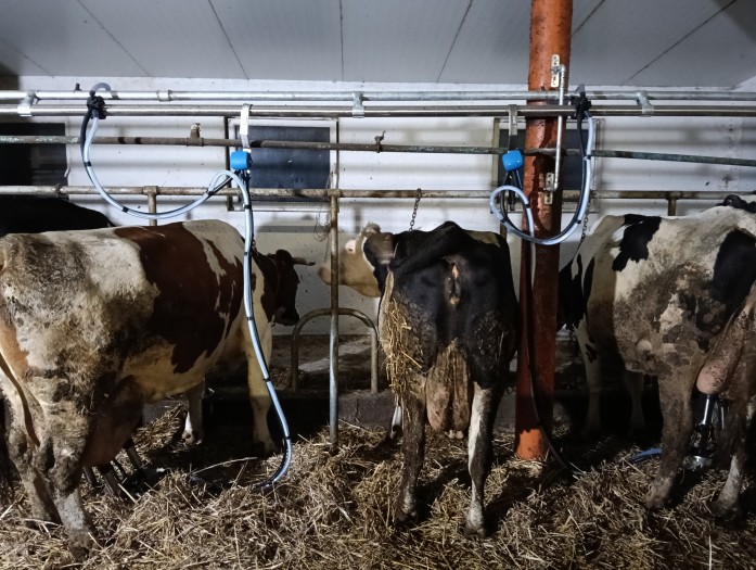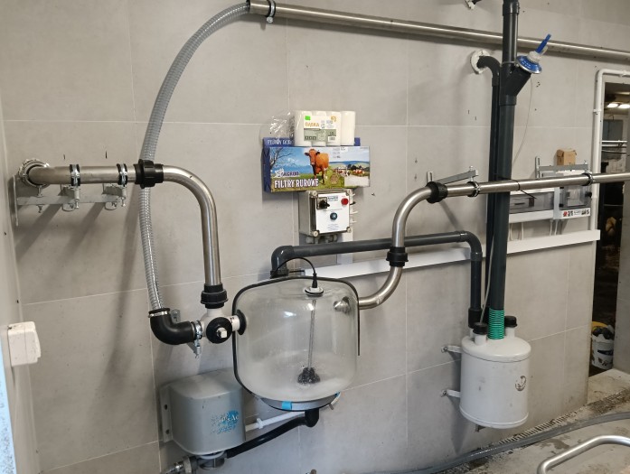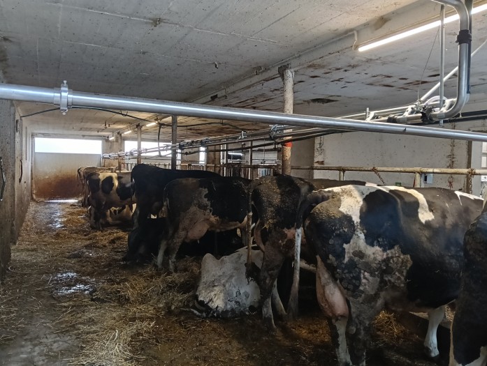 Układ obór był skomplikowany, dlatego całkowita długość rurociągu mlecznego przekroczyła 100 metrów, na długości którego musieliśmy zainstalować 4 bramki uchylne. Podczas montażu nie wszystkie stanowiska były zajęte, jednak zmieni się to już niedługo.