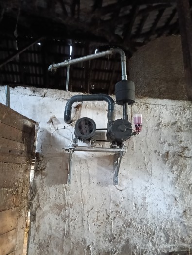 W tym tygodniu pracowaliśmy na oborze uwięziowej, gdzie instalowaliśmy używaną dojarkę przewodową, która docelowo będzie mogła obsłużyć 42 krowy mleczne w 3 rzędach w nowej i starej oborze.